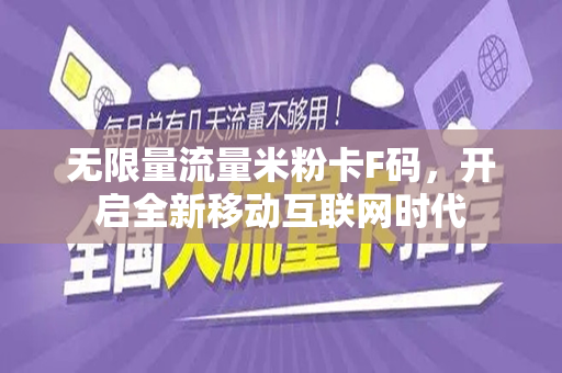 无限量流量米粉卡F码是由某知名运营商推出的一款流量套餐产品,它不仅提供了无限制的流量使用,还具有高速的网络体验和多种优惠活动,这款产品的推出,无疑为移动互联网用户带来了全新的体验。