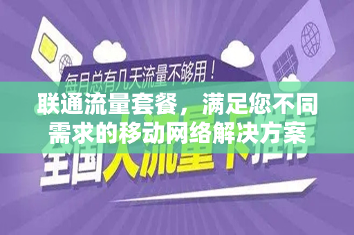 在当今数字化时代,移动互联网已经成为我们生活中不可或缺的一部分,无论是工作、学习还是娱乐,我们都离不开手机和网络,而在这个背景下,联通流量套餐作为一种满足用户不同需求的移动网络解决方案,越来越受到人们