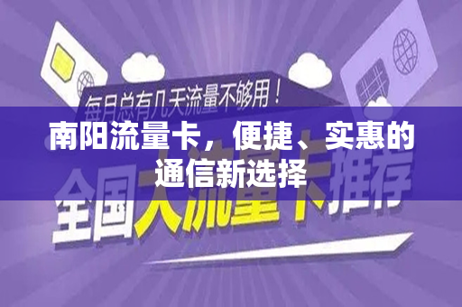 随着移动互联网的飞速发展,流量卡作为移动通信的重要载体,越来越受到人们的关注,南阳流量卡作为一款具有地域特色的流量卡产品,凭借其便捷、实惠的特点,在市场上受到了广泛的关注和好评,本文将详细介绍南阳流量