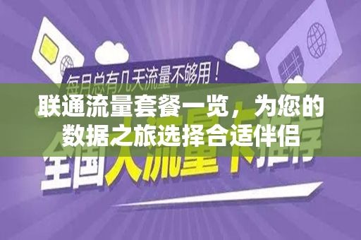 在移动互联网时代,流量已经成为我们日常生活中不可或缺的一部分,作为国内领先的通信服务提供商之一,中国联通提供了丰富的流量套餐供用户选择,本文将详细解析联通的流量套餐,帮助您更好地了解并选择适合自己的套