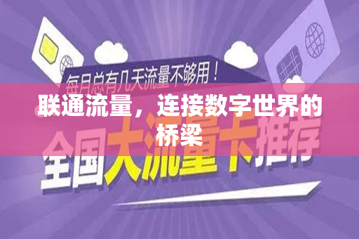 联通流量是用户获取信息的重要途径,通过联通流量,用户可以随时随地访问互联网,获取各种信息,如新闻、天气、交通等,用户还可以通过联通流量使用各种应用软件,如社交软件、购物平台、在线教育等,以满足日常生活和工作的需求。