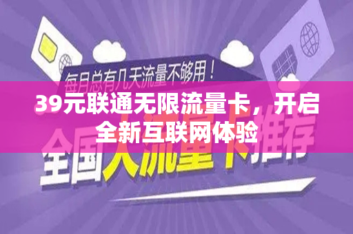 在互联网高速发展的今天,流量成为了我们生活中不可或缺的一部分,对于许多联通用户来说,一款价格实惠、流量无限的流量卡无疑成为了他们的首选,我们就来详细介绍一下这款备受关注的39元联通无限流量卡,让我们一起看看它是如何开启全新互联网体验的。