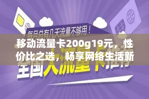 随着移动互联网的飞速发展,手机已经成为我们生活中不可或缺的一部分,而流量作为手机上网的必备资源,其重要性不言而喻,在众多流量套餐中,移动流量卡200G仅需19元的优惠套餐备受关注,本文将详细介绍这一流