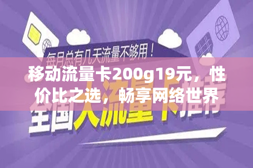随着移动互联网的飞速发展,流量需求日益增长,移动流量卡成为了人们生活中不可或缺的一部分,在众多流量套餐中,移动流量卡200g19元以其超高的性价比吸引了众多用户的关注,本文将详细介绍这款流量卡的优点、