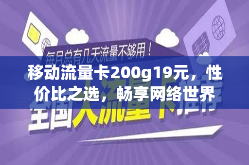 随着移动互联网的飞速发展,流量需求日益增长,如何以更优惠的价格购买到更多流量的移动流量卡,成为了广大用户关注的焦点,我们就来谈谈这款备受瞩目的移动流量卡——200g19元,它以其超高的性价比,成为了众