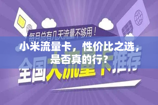 在移动互联网时代,流量卡成为了我们生活中不可或缺的一部分,各大运营商纷纷推出各种流量套餐,其中小米流量卡以其高性价比和便捷的购买方式吸引了众多用户的关注,小米流量卡到底行不行?本文将全面分析小米流量卡