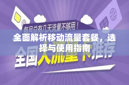 随着移动互联网的飞速发展,移动流量套餐已经成为我们日常生活中不可或缺的一部分,无论是工作、学习还是娱乐,移动流量都扮演着至关重要的角色,本文将全面解析移动流量套餐的相关知识,包括其定义、种类、选择以及