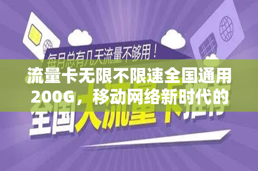 随着移动互联网的飞速发展,流量问题成为了人们使用手机上网的一大难题,为了解决这一问题,流量卡无限不限速全国通用200G的推出,无疑为消费者带来了极大的便利,本文将详细介绍这一流量卡的特性、优势、使用场