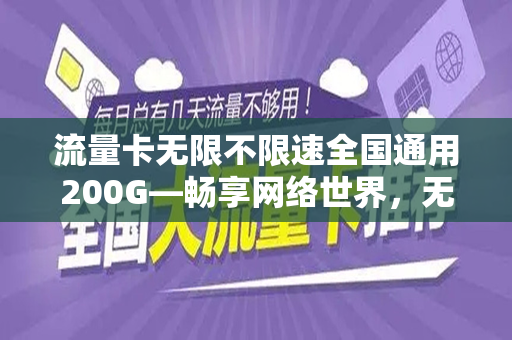 随着移动互联网的飞速发展,流量卡成为了我们日常生活中不可或缺的一部分,在众多流量卡产品中,一款名为“无限不限速全国通用200G”的流量卡备受关注,本文将详细介绍这款流量卡的特点、优势、使用场景以及其带