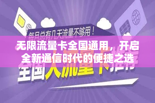 随着移动互联网的飞速发展,人们对通信网络的需求日益增长,在这个信息爆炸的时代,流量成为了人们生活中不可或缺的一部分,而“无限流量卡全国通用”这一新兴产品,以其独特的优势和便捷性,正逐渐成为通信市场的新