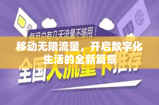 在科技日新月异的今天,移动互联网已经成为我们生活中不可或缺的一部分,移动无限流量更是成为了我们追求网络自由、便捷生活的关键要素,本文将围绕“移动无限流量”这一关键词,从其定义、优势、应用场景以及未来发