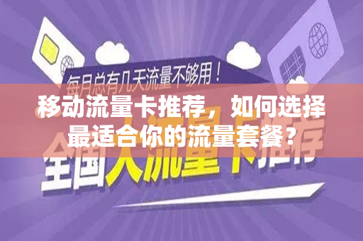 随着移动互联网的普及,移动流量卡成为了人们生活中不可或缺的一部分,无论是工作、学习还是娱乐,我们都需要依靠移动网络来保持联系和获取信息,市面上的移动流量卡种类繁多,如何选择最适合自己的流量套餐呢?本文