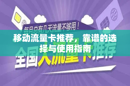 随着移动互联网的普及,移动流量卡成为了人们生活中不可或缺的一部分,无论是出差、旅游还是日常使用,一张靠谱的移动流量卡都能为我们带来极大的便利,本文将为您介绍如何选择靠谱的移动流量卡,以及其使用方法和注