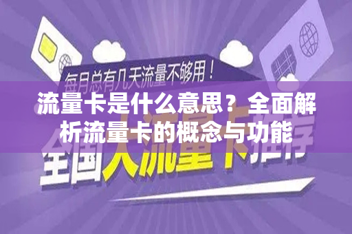 在移动互联网高速发展的今天,流量卡已成为我们日常生活中不可或缺的一部分,流量卡是什么意思呢?本文将全面解析流量卡的概念、功能以及使用场景,帮助大家更好地理解并使用流量卡,流量卡的概念流量卡,顾名思义,