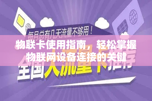 随着物联网技术的不断发展,物联卡已经成为了我们生活中不可或缺的一部分,物联卡,顾名思义,是用于物联网设备连接的卡片,它为物联网设备提供了网络连接功能,物联卡怎么用呢?本文将详细介绍物联卡的使用方法及注