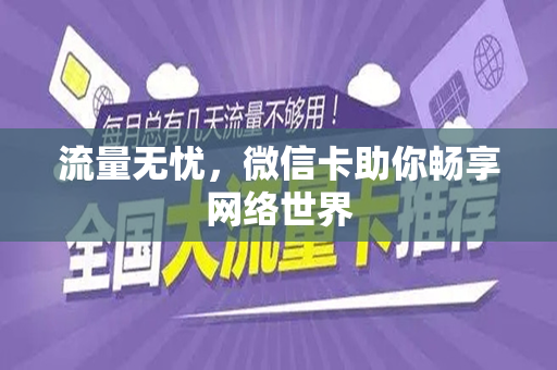 在如今这个信息爆炸的时代,互联网已经成为我们生活中不可或缺的一部分,而随着移动互联网的快速发展,流量问题也日益凸显,为了满足广大用户对流量的需求,各大运营商纷纷推出了各种流量套餐和优惠活动,微信卡作为