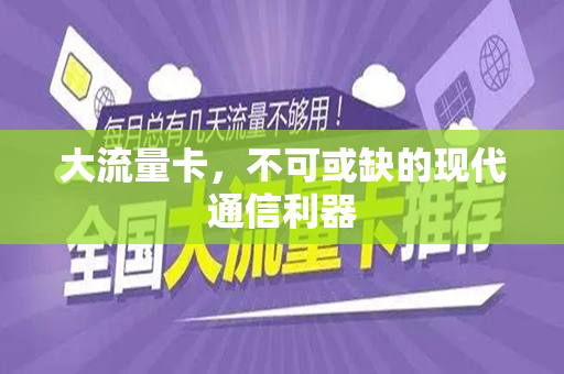 在当今信息爆炸的时代,互联网已经成为我们生活中不可或缺的一部分,而大流量卡作为现代通信的利器,更是受到了广大用户的热烈追捧,本文将围绕“有大流量卡不”这一关键词,从大流量卡的重要性、应用场景、优势以及